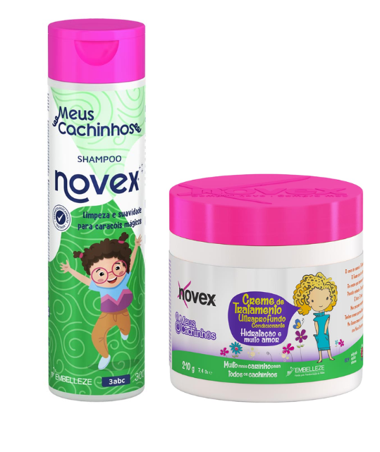 El Pack Meus Cachinhos Kids de Novex está diseñado especialmente para cuidar los rizos de los más pequeños con suavidad, eficacia y mucho amor. Incluye un Shampoo sin sal de 300ml y una Crema de Tratamiento de 210g, ideales para limpiar, hidratar y definir los cabellos rizados y ondulados de los niños sin irritar el cuero cabelludo.